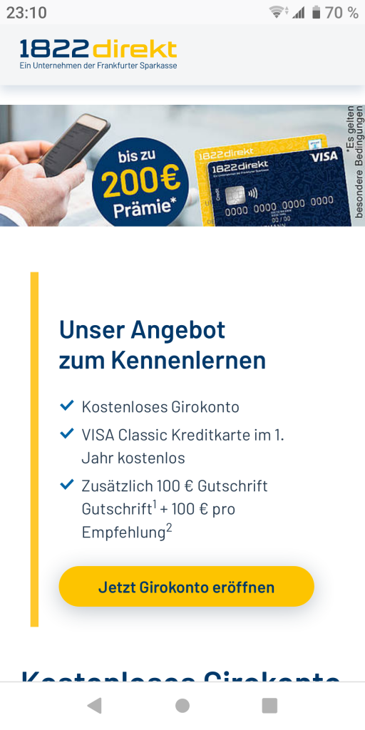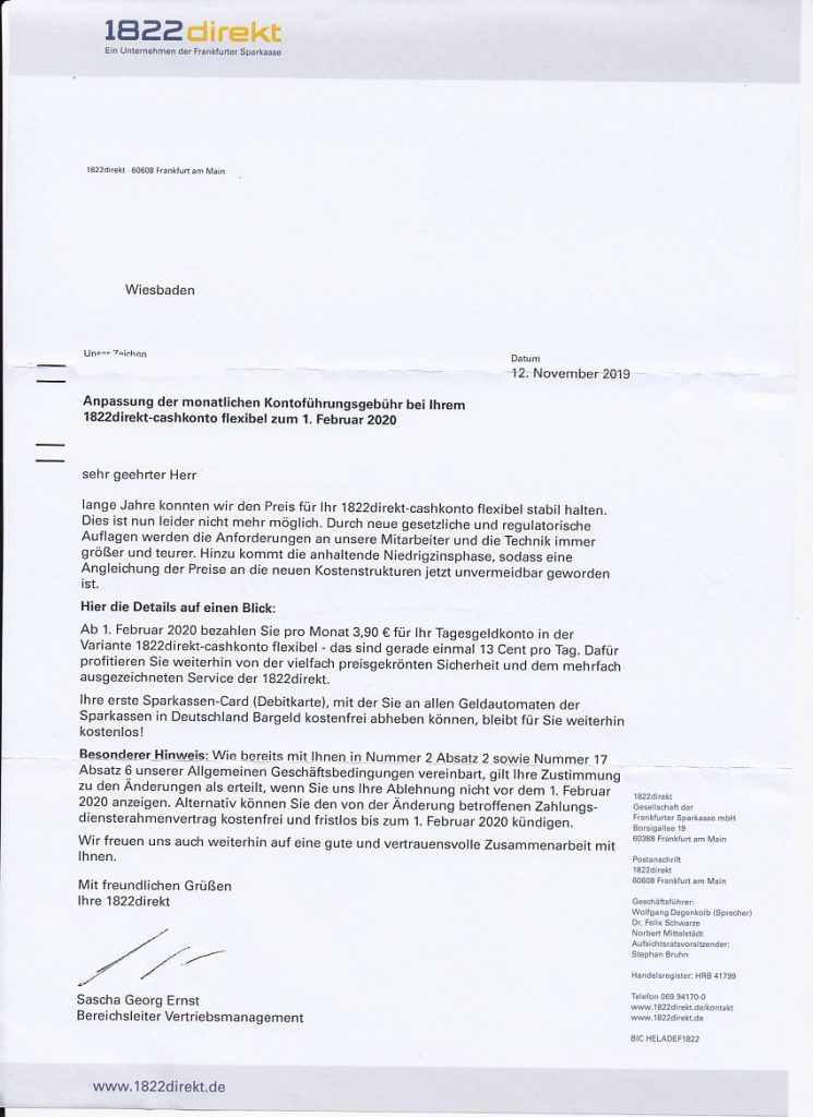 Lastatempe mi ricevis tiun leteron de la banko 1822direkt – filio de Frankfurter Sparkasse.