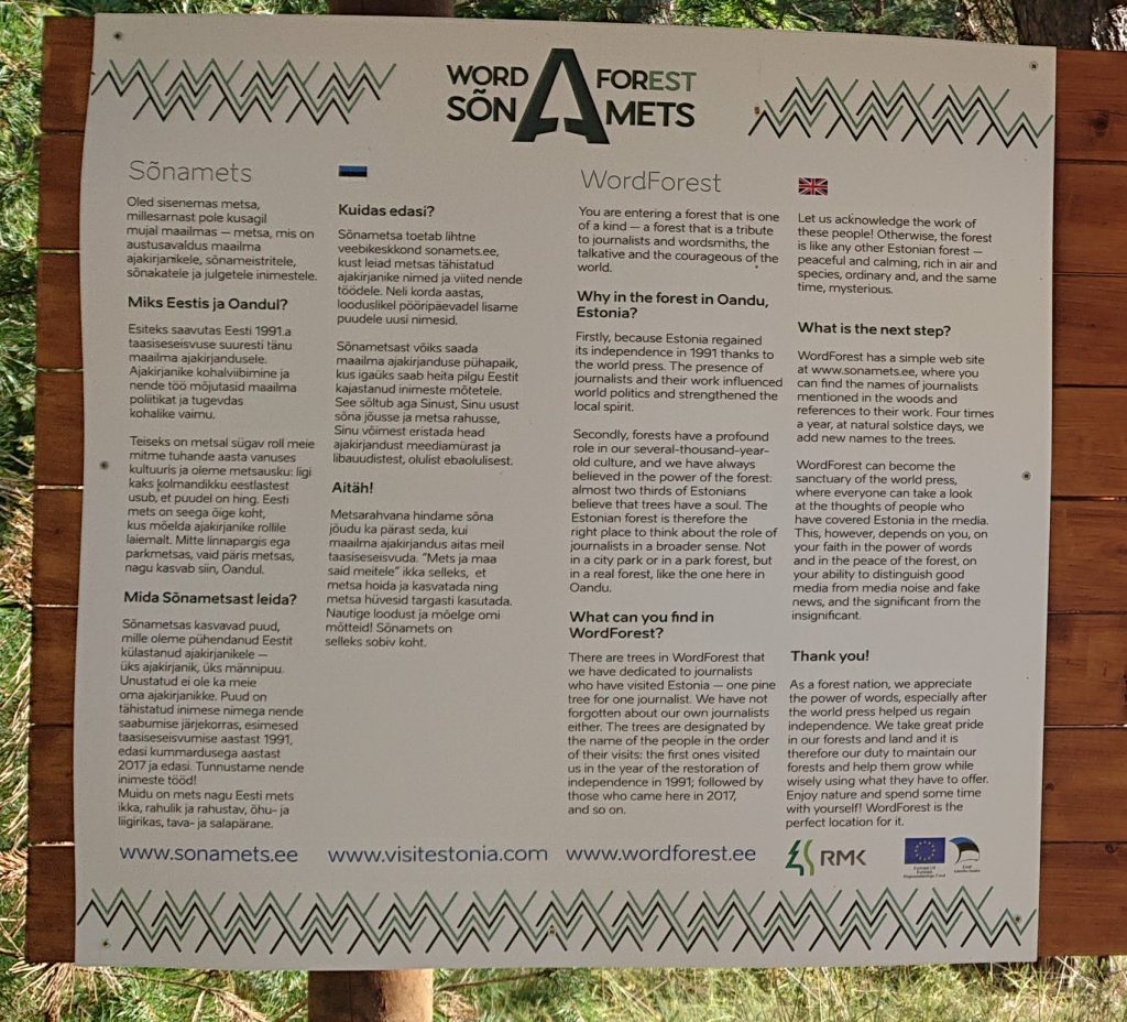 Apud nia feria domo, meze de grandioza arbaro, la Estonoj deklaris unu parton de la arbaro al Arbaro de Vortoj.