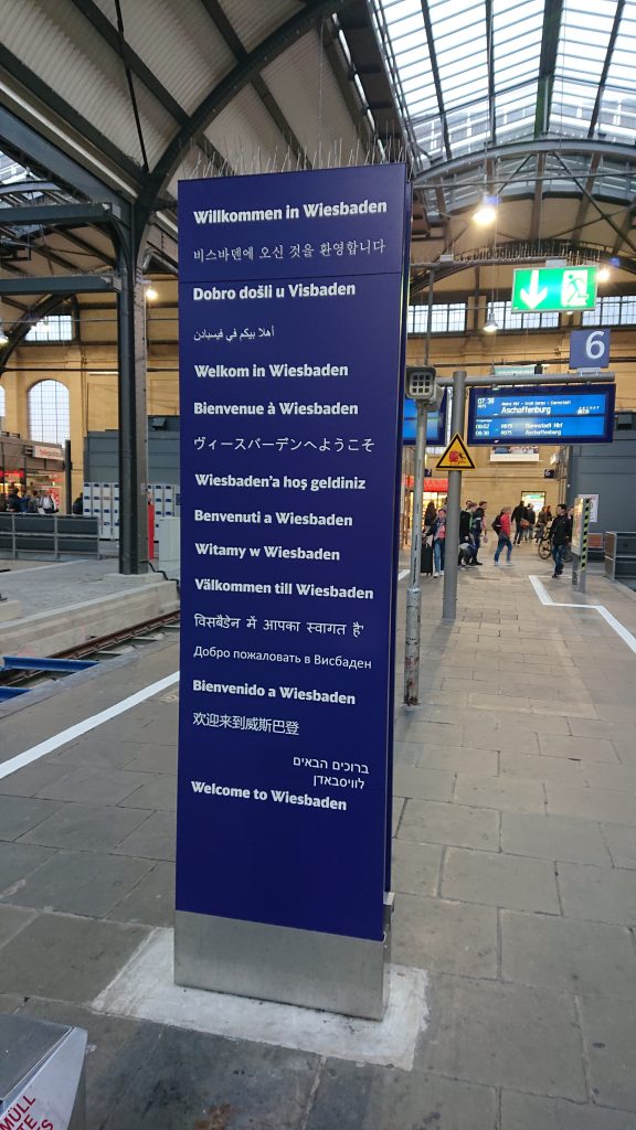 Lastatempe nova panelo estis starigata en la ĉefstacio de Visbadeno. Ĝi multlingve bonvenigas vojaĝantojn al la urbo.