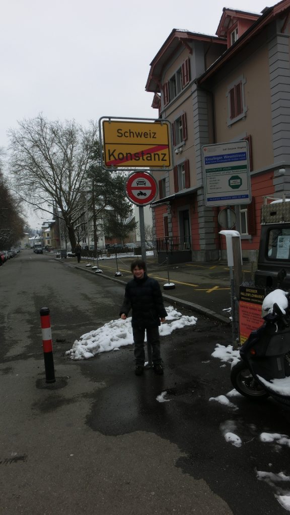 Estis tre vintra tago je la fino de Marto. Tiu loko ne estas la ĉefa limpasejo. Male, tie la limo estis fermata nur kelkaj jaroj antaŭe. Inter la 1930-jaroj kaj 2009 barilo disigs la du urbojn. La aliĝo de Svislando al la Trakto de Schengen eblis malkonstrui la barilon. Germanlingvoluj povas legi plu en tiu artikolo de loka novaĵretejo.