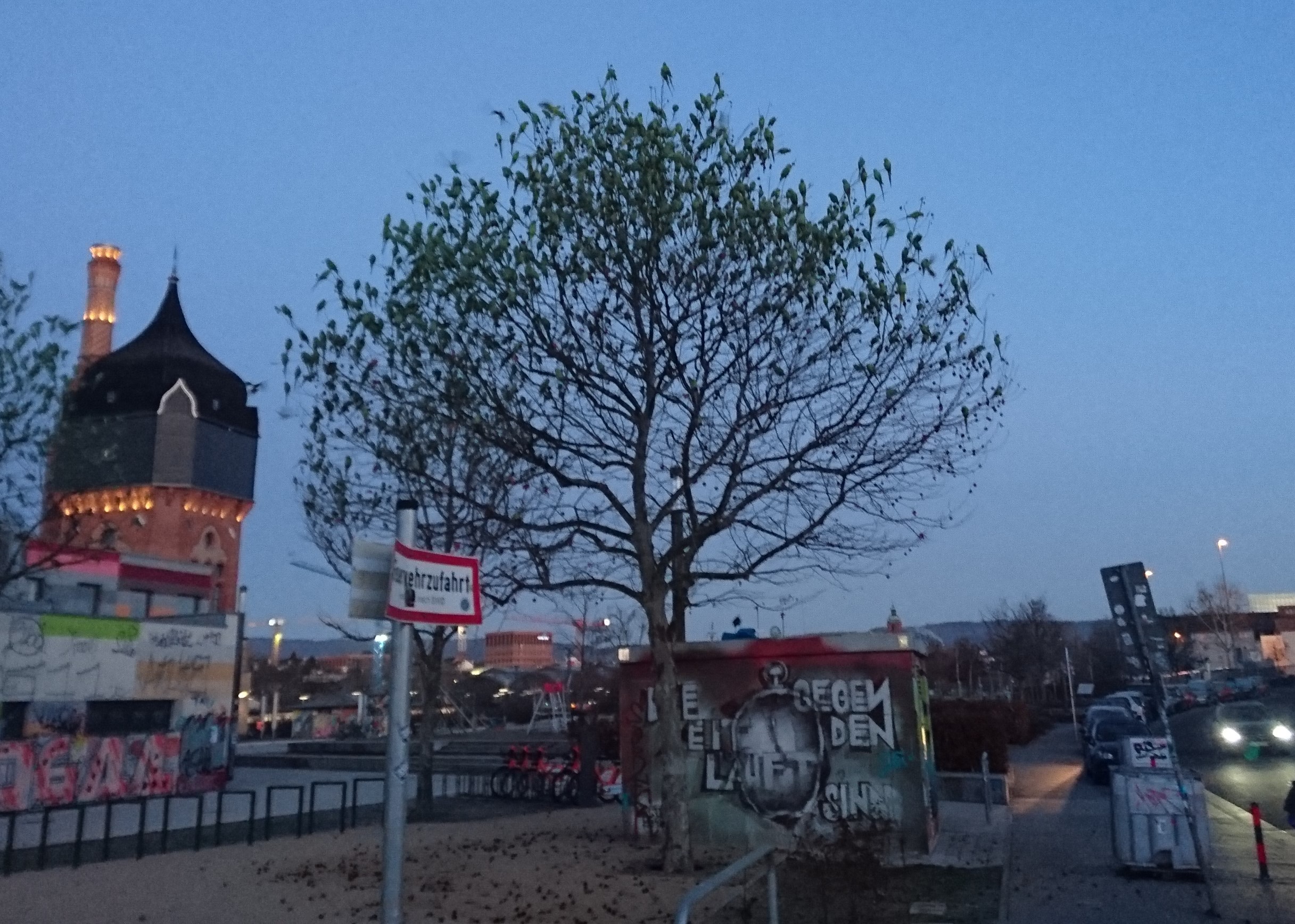 Fakte estas Februaro kaj vintro. Ankoraŭ el la arboj kaj arbustoj ne ŝosis folioj. Tiom pli la vidaĵo al la arbo en ĉi tiu foto surprizis min. Je la unua rigardo ĝi aspektis kiel havi multajn verdajn foliojn en la supera duono.