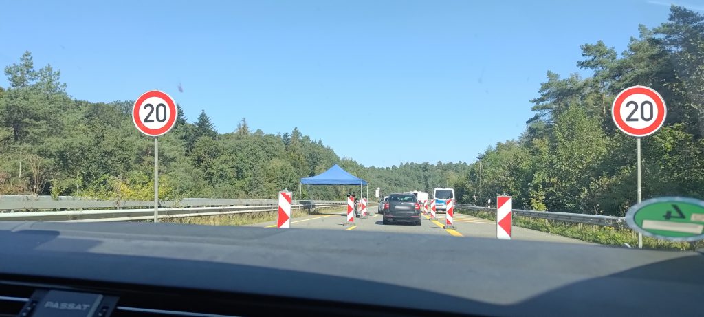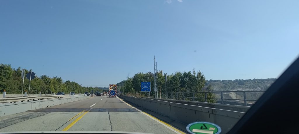 Kiam dum la reveno el Luksemburgio ni trairis la limon, neniu kontrolo okazis. Je la foto oni nur vidas konstruejon de aŭtovojo.